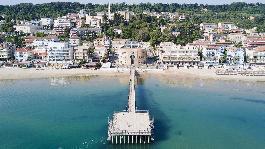 Η ακτογραμμή είναι μεγάλη και προσβάσιμη, με εκτεταμένες αμμώδεις παραλίες και ρηχά, ήρεμα νερά, χαρακτηριστικά αυτής της πλευράς της Αδριατικής. Ένας παραθαλάσσιος περίπατος εκτείνεται παράλληλα, γεμάτος φοίνικες, καφετέριες και παραθαλάσσια καταστήματα, δημιουργώντας έναν σταθερό ρυθμό δραστηριότητας που εντείνεται κατά τους καλοκαιρινούς μήνες, αλλά παραμένει μέρος της καθημερινής ζωής όλο το χρόνο.