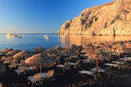 Η παραλία Καμάρι στη Σαντορίνη είναι ένας από τους πιο δημοφιλείς προορισμούς του νησιού, γνωστή για την ξεχωριστή μαύρη ηφαιστειακή άμμο της και τα καθαρά, γαλάζια νερά του Αιγαίου. Ιδανική για οικογένειες, ζευγάρια και λάτρεις της θάλασσας, η Καμάρι συνδυάζει την φυσική ομορφιά με την άνεση και την ψυχαγωγία.