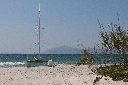 Η εκτεταμένη παραλία της ξεπερνά σε μήκος τα 5 χλμ. Είναι ιδιαίτερα οργανωμένη και δημοφιλής. Την υπέροχη αμμουδιά της επισκέπτονται κάθε χρόνο χιλιάδες επισκέπτες του νησιού. Υπάρχει η κατάλληλη υποδομή για την άσκηση όλων των θαλάσσιων σπορ. Οι δυνατοί άνεμοι καθιστούν την παραλία ιδανική για windserfing. Από το λιμάνι του Μαστιχαρίου ξεκινούν τα καράβια με προορισμό την Κάλυμνο.