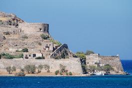 Access to Spinalonga is by caiques departing from the port of Agios Nikolaos and Elounda.