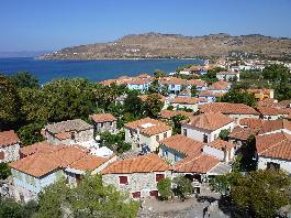 Petra is a beautiful seaside village that has developed into a popular tourist resort. It is located in the northern part of Lesvos, 57 km from Mytilene, and serves as the seat of the municipality of the same name. The village stands out for its natural beauty and well-developed infrastructure. Particularly impressive is the traditional architecture of the settlement, with well-preserved old houses spreading around a massive rock from which the village takes its name. At the top of this rock stands one of the most important religious monuments on the island and undoubtedly the most significant landmark of the area. This is the Church of Panagia Glykofilousa, built in the early 18th century. To reach it, visitors must climb 114 steps carved into the rock. According to local tradition, a ship captain once transported the icon of the Virgin Mary on his vessel, only to discover one night that it had disappeared. He then noticed a mysterious light at the top of the rock, where he found the icon and decided to build the church. Another important attraction of the area is the “House of Vareltzidaina.” Built in the early 18th century, it has been declared a preserved monument and is a mansion of Macedonian architectural style, featuring elaborate woodcarving and painted decoration. The name “Vareltzidaina” comes from its last owner, who lived there until her death in 1940. Petra also boasts a wonderful beach. Its sandy shoreline stretches for 3 km, while its crystal-clear waters are ideal for swimming and water sports. It is a well-organized beach offering all modern amenities, with facilities for water sports and seaside activities. In Petra, you will find hotels of all categories. During the summer months, the municipality¢s Cultural Center organizes the “Petrano Summer,” featuring cultural events and an exhibition of traditional products. It is also worth attending the Sardine Festival, held every August at the picturesque harbor of Petra.