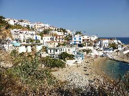 It is located at the northern tip of the island, 55 km from Agios Kirykos.