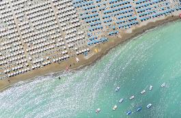 Πέρα από την ιστορία του, το Ρίμινι φημίζεται για τον παραθαλάσσιο τρόπο ζωής του. Η πόλη διαθέτει πάνω από 15 χιλιόμετρα απαλών αμμωδών παραλιών κατά μήκος της Αδριατικής, γεμάτες με πολύχρωμες ομπρέλες, beach club και εστιατόρια που σερβίρουν φρέσκα θαλασσινά και παραδοσιακή κουζίνα Romagnolo. Τα ηλιοβασιλέματα εδώ βάφουν τον ορίζοντα με ζεστές αποχρώσεις, ενώ το απαλό θαλασσινό αεράκι δημιουργεί το τέλειο σκηνικό για βραδινές βόλτες κατά μήκος της παραλιακής λεωφόρου.